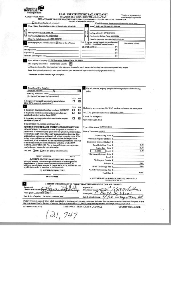 | Mailing Address: | PO BOX 713 COLLEGE PLACE, WA 99324 | % Ownership: | 100.0000000000% |