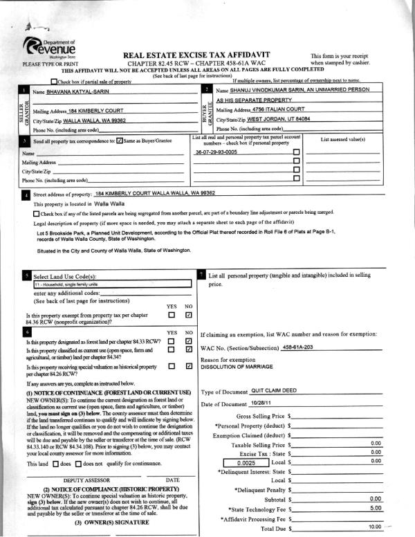 | 3 | 07/06/2012 | QCD | QUIT CLAIM DEED | KATYAL-SARIN, BHAVANA | SARIN, SHANUJ | | | $0.00 | 122311 | 2012-05708 |