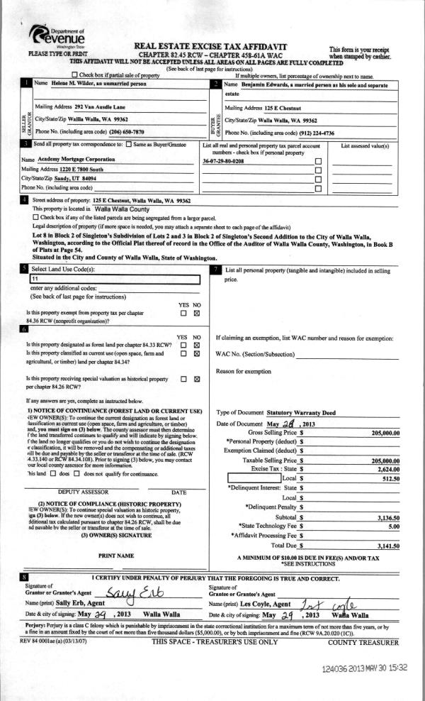 | 5 | 05/30/2013 | WARRANTY D | WARRANTY DEED | WILDER, HELENE M | EDWARDS, BENJAMIN | | | $205,000.00 | 124036 | 2013-05402 |