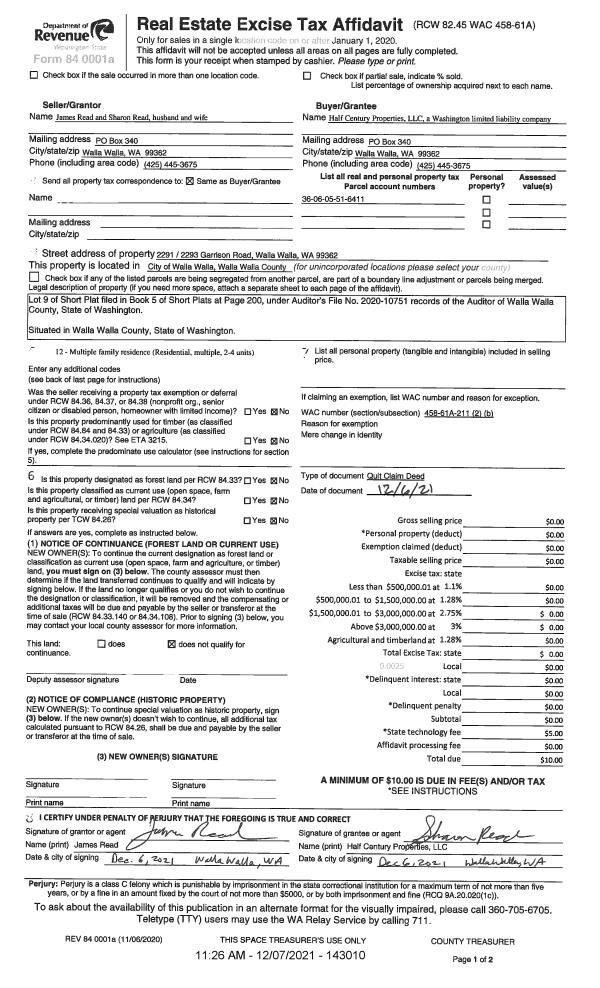 | Mailing Address: | 3175 PLAZA WAY WALLA WALLA, WA 99362 | % Ownership: | 100.0000000000% |