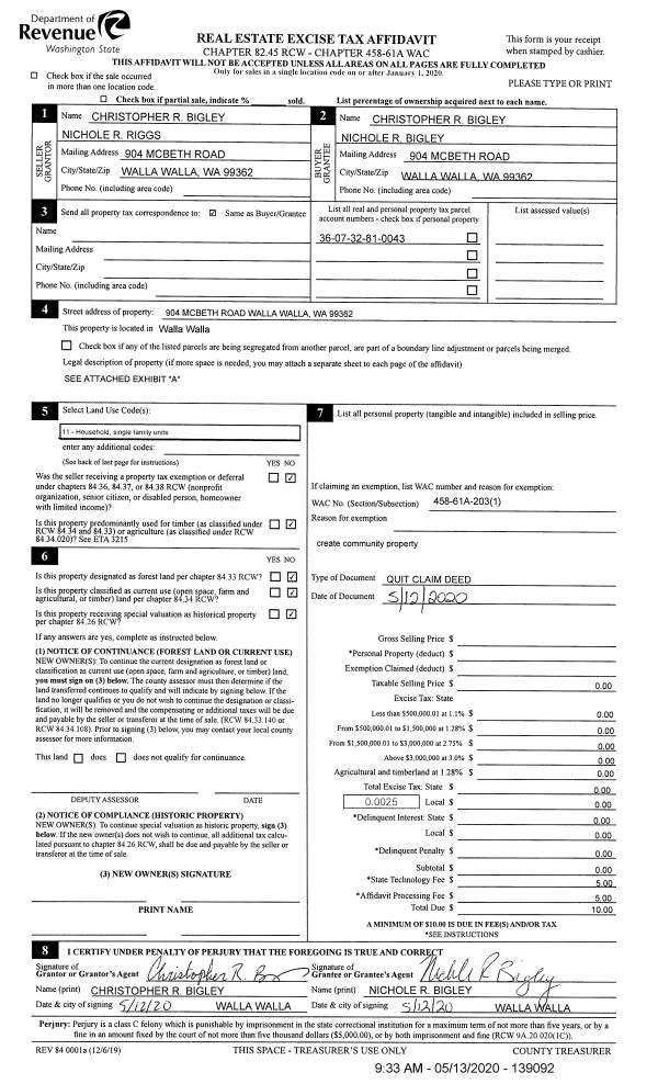 | 2 | 04/25/2020 | QCD | QUIT CLAIM DEED | HESSLER SPENCER W | HESSLER SPENCER W & KRISTIN G | | | $0.00 | 139006 | 2020-03714 |
