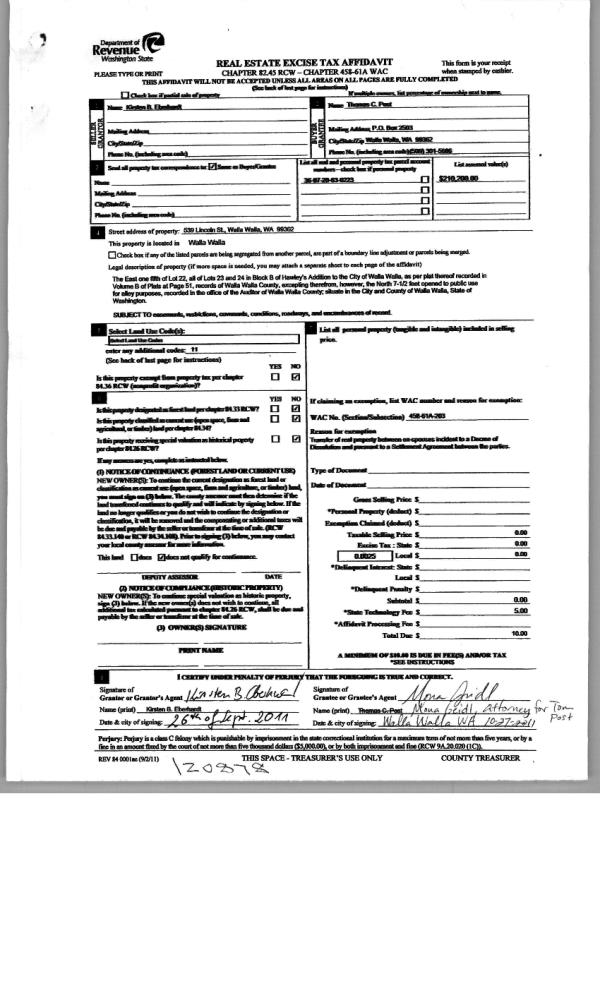 | 6 | 10/19/2010 | WARRANTY D | WARRANTY DEED | POST, THOMAS C | EBERHARDT, KIRSTEN B | | | | 0 | CC #05-3---00246-2 |