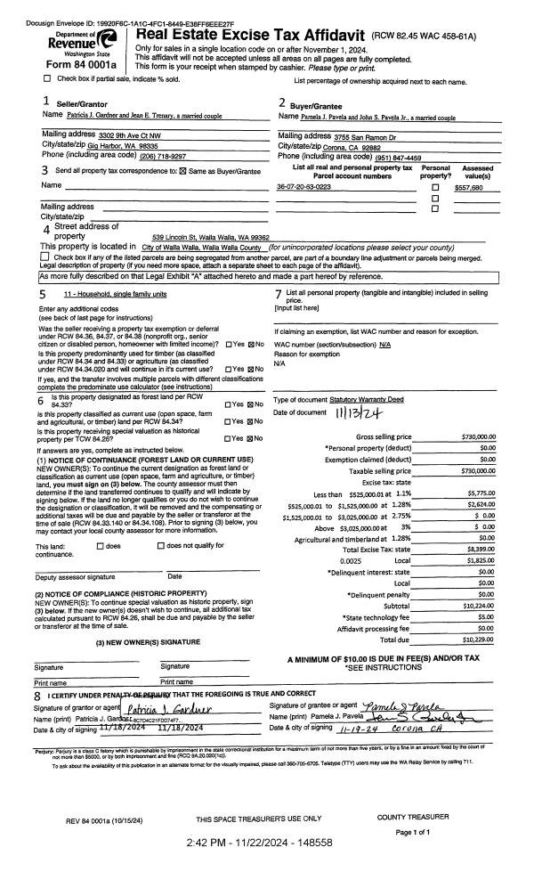 | 2 | 11/22/2024 | SWD | STATUTORY WARRANTY DEED | GARDNER PATRICIA J | PAVELA PAMELA J & JOHN S JR | | | $730,000.00 | 148558 | 2024-06799 |