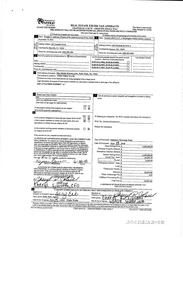 | 2 | 06/18/2018 | SWD | STATUTORY WARRANTY DEED | AMBROSE LIVING TRUST | INVESTCO 1031 LLC | | 6-PARCELS | $1,640,000.00 | 134940 | 2018-04893 |