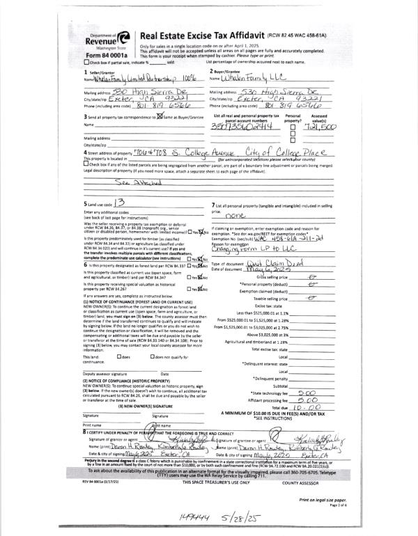 | 1 | 05/28/2025 | QCD | QUIT CLAIM DEED | WHALEN FAMILY LTD PARTNERSHIP | WHALEN FAMILY LLC | | | | 149444 | 2025-02955 |