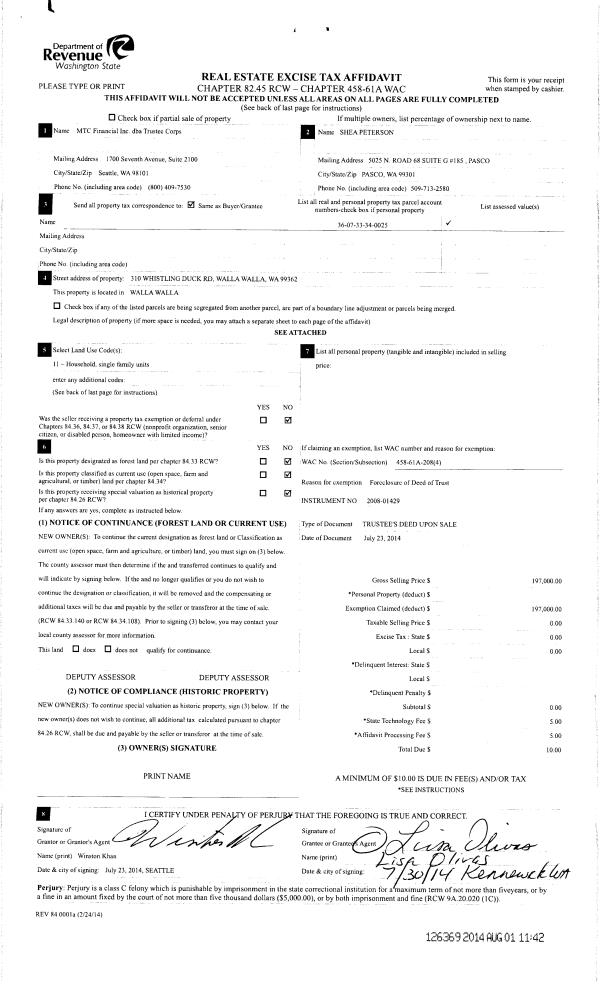 | 4 | 09/28/2012 | WARRANTY D | WARRANTY DEED | BRAY RAYMOND L & NANCY R | SACHA WILLIAM A JR & VICKI J | | | $90,000.00 | 122725 | 2012-08511 |