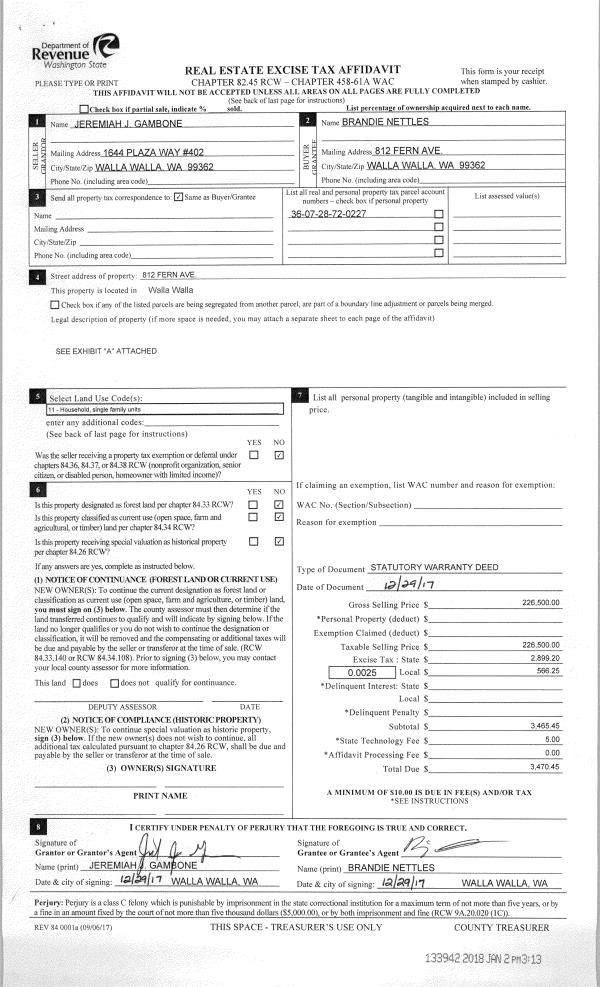 | 2 | 01/02/2018 | SWD | STATUTORY WARRANTY DEED | GAMBONE JEREMIAH J | NETTLES BRANDIE | | | $226,500.00 | 133942 | 2018-00084 |