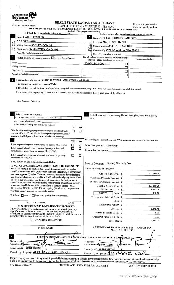 | Mailing Address: | LEESA MARIE SCHANDEL 519 NEWELL ST WALLA WALLA, WA 99362 | % Ownership: | 100.0000000000% |