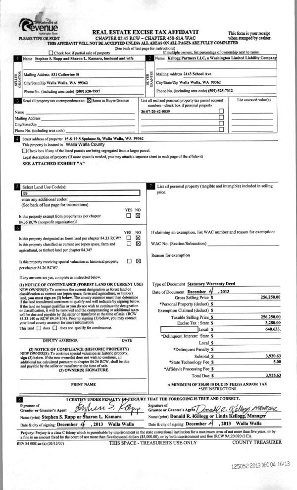 | Mailing Address: | 15 S SPOKANE ST WALLA WALLA, WA 99362 | % Ownership: | 100.0000000000% |
