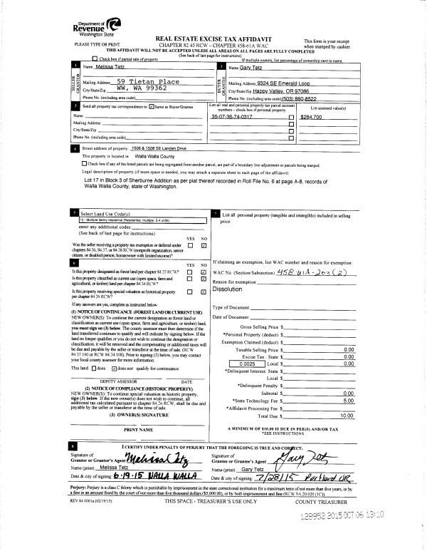 | Mailing Address: | GARY TETZ 9324 SE EMERALD LOOP HAPPY VALLEY, OR 97086 | % Ownership: | 100.0000000000% |
