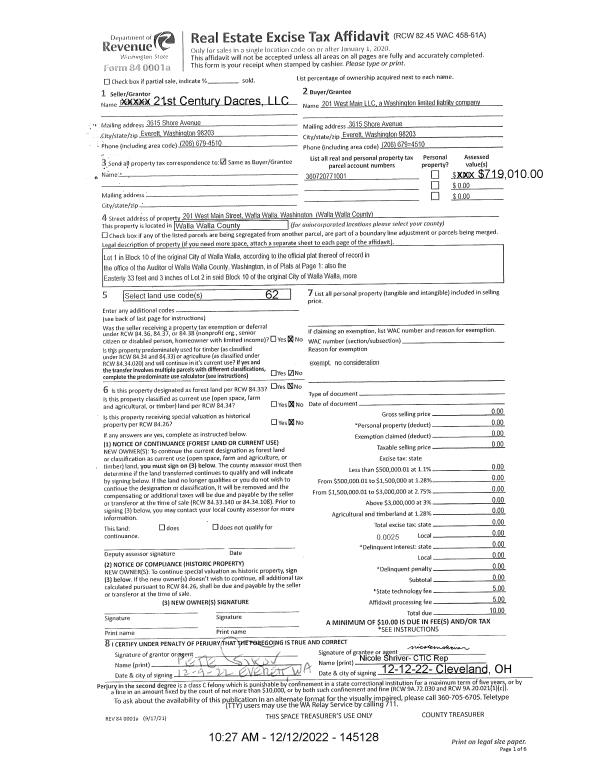 | 3 | 12/12/2022 | | | 21ST CENTURY DACRES LLC | 201 WEST MAIN LLC | | | | 145127 | NO DEED |