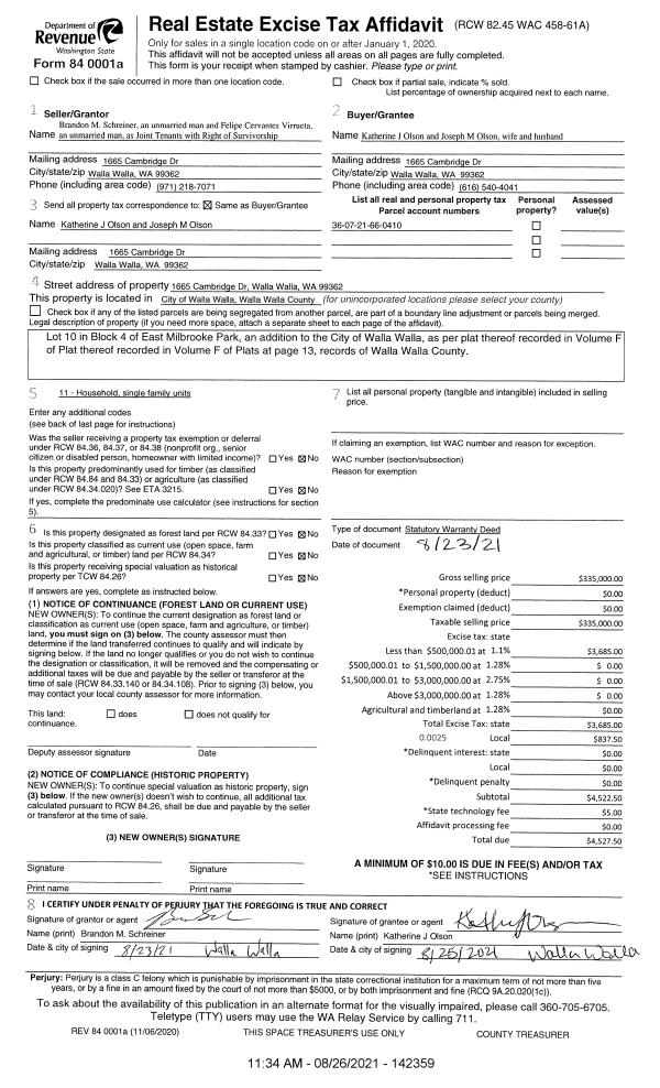 | Mailing Address: | 1216 S CAMPBELL RD WALLA WALLA, WA 99362 | % Ownership: | 100.0000000000% |