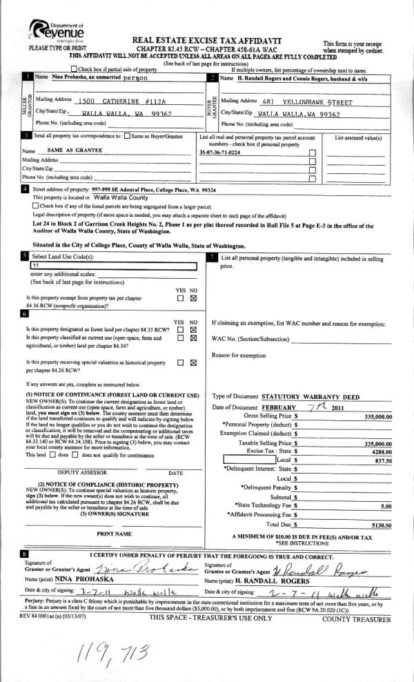 | 2 | 02/08/2011 | WARRANTY D | WARRANTY DEED | PROHASKA, LYNN | ROGERS, H RANDALL & CONNIE A | | | $335,000.00 | 119713 | 2011-01228 |