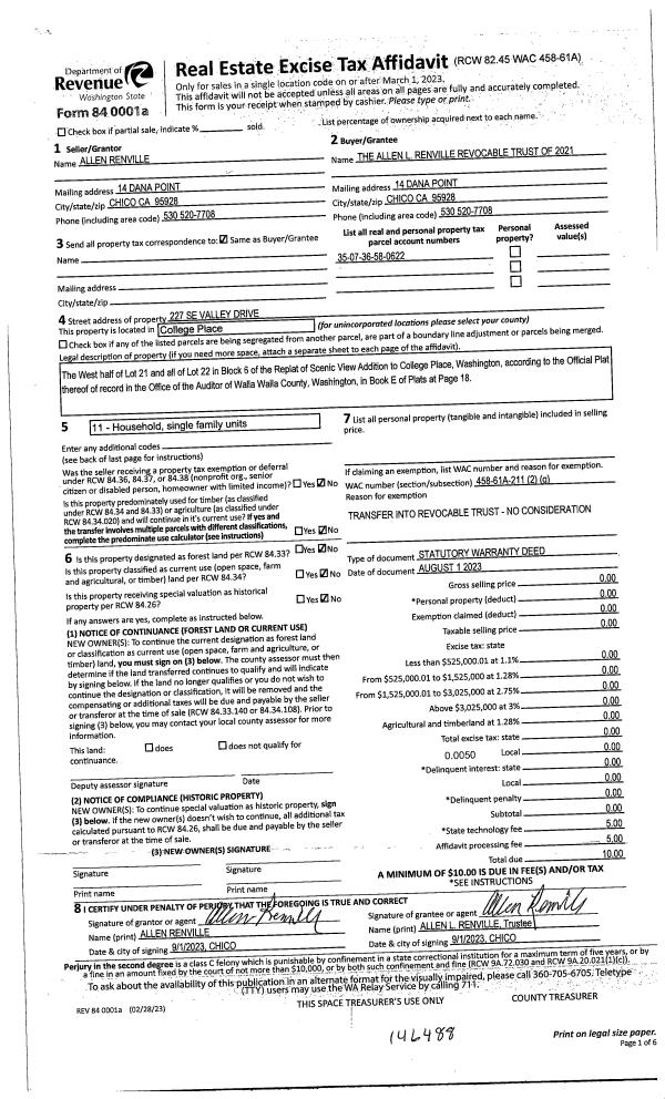 | 2 | 09/18/2023 | WARRANTY D | WARRANTY DEED | RENVILLE AL | RENVILLE ALLEN L REVOCABLE TRUST | | | | 146488 | 2023-05433 |