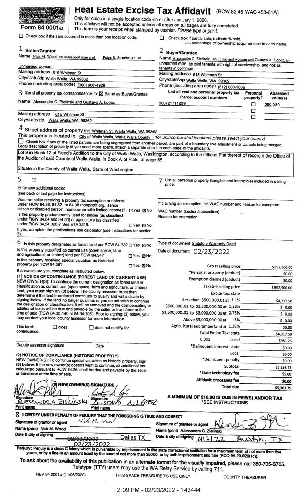 | 1 | 02/23/2022 | SWD | STATUTORY WARRANTY DEED | WOOD NICK M | ZIELINSKI ALESSANDRA C | | | $392,500.00 | 143444 | 2022-01612 |