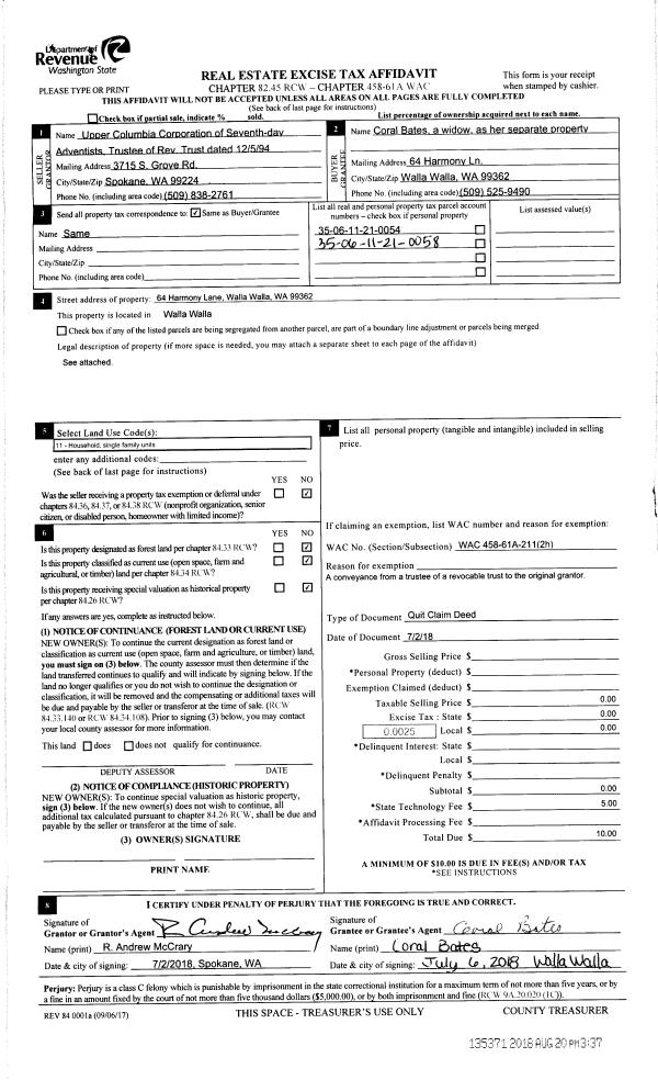 | Mailing Address: | 64 HARMONY LN WALLA WALLA, WA 99362 | % Ownership: | 100.0000000000% |