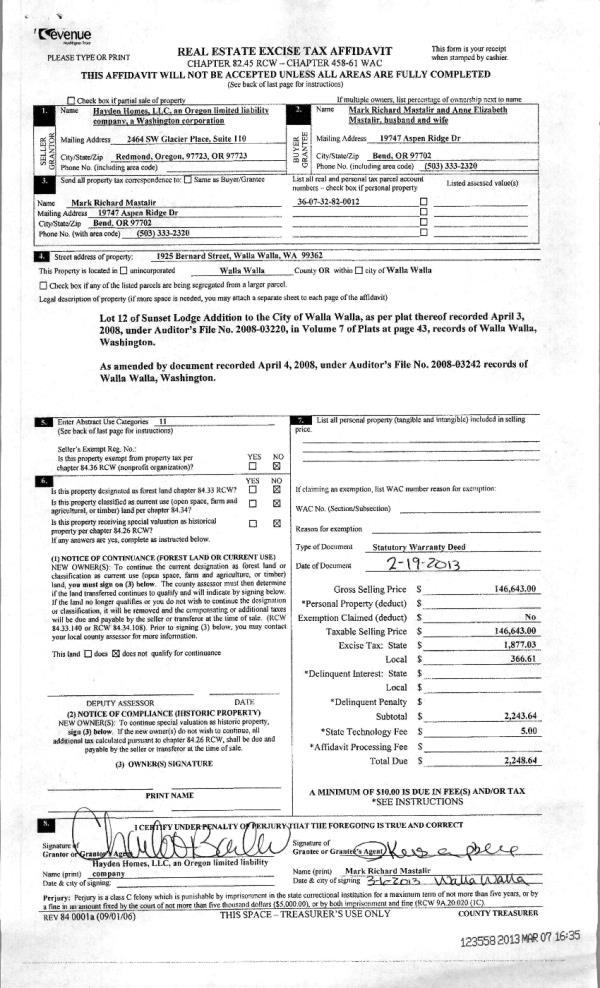 WALLA WALLA, WA 99362 | SUNSET LODGE ADDITION LOT 43 |