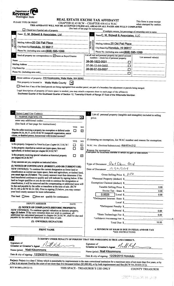 | 5 | 12/29/2015 | QCD | QUIT CLAIM DEED | C M BIDWELL & ASSOCIATES LTD | C M BIDWELL & ASSOCIATES LLC | | | $0.00 | 129577 | 2016-00675 |