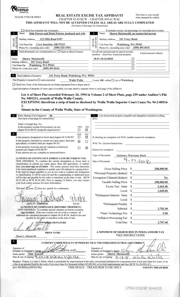 | 2 | 09/18/2018 | SWD | STATUTORY WARRANTY DEED | FOWERS DALE & DORIS M | MARTUSCELLI SHAWN L | | | $208,000.00 | 135563 | 2018-07765 |