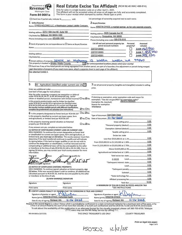 WA 99360 | SEC 25 TWP 7 RNG 32 W1/2NW1/4 |