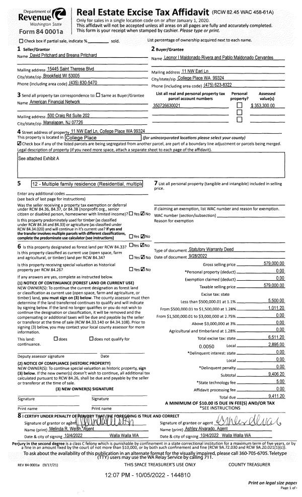 | 2 | 10/05/2022 | SWD | STATUTORY WARRANTY DEED | PRITCHARD DAVID & BREANA | MALDONADO RIVERA LEONOR I | | | $579,000.00 | 144810 | 2022-08224 |