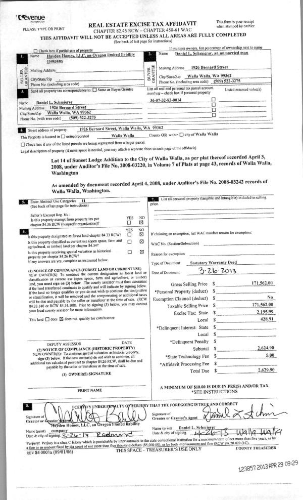 WALLA WALLA, WA 99362 | SUNSET LODGE ADDITION LOT 45 |