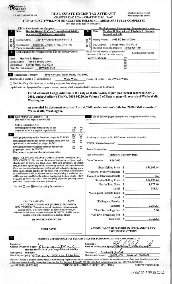 WA 99362 | SUNSET LODGE ADDITION LOT 26 |