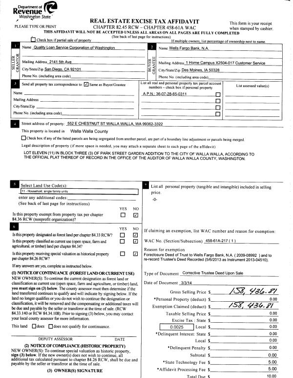 | 5 | 03/07/2014 | TRUSTEES D | TRUSTEE'S DEED | WELLS FARGO BANK NA | | | | $158,436.00 | 125536 | 2014-01605 |