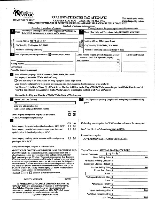 | 3 | 02/19/2015 | WARRANTY D | WARRANTY DEED | SECRETARY OF HOUSING & URBAN DEV | LALLY DON & TERRA J | | | $0.00 | 127468 | 2015-01605 |