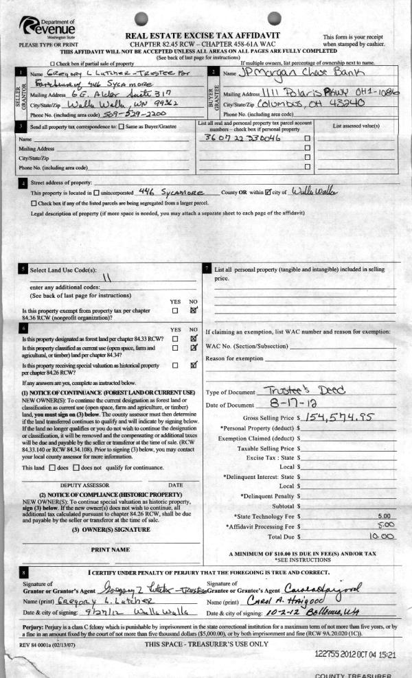 | 5 | 10/04/2012 | WARRANTY D | WARRANTY DEED | DUDENKOV, MICHAEL V & ELIZABET | JPMORGAN CHASE BANK NA | | | $154,574.00 | 122755 | 2012-08760 |