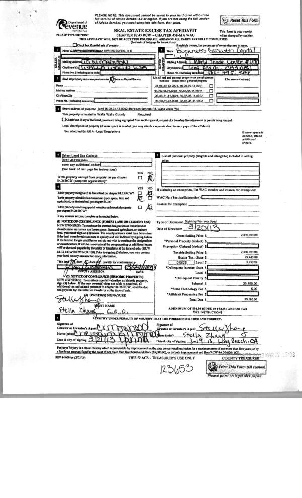 | 2 | 05/07/2013 | WARRANTY D | WARRANTY DEED | HW PARTNERS LLC | | 9-PARCELS | | $2,300,000.00 | 123916 | 2013-04528 |