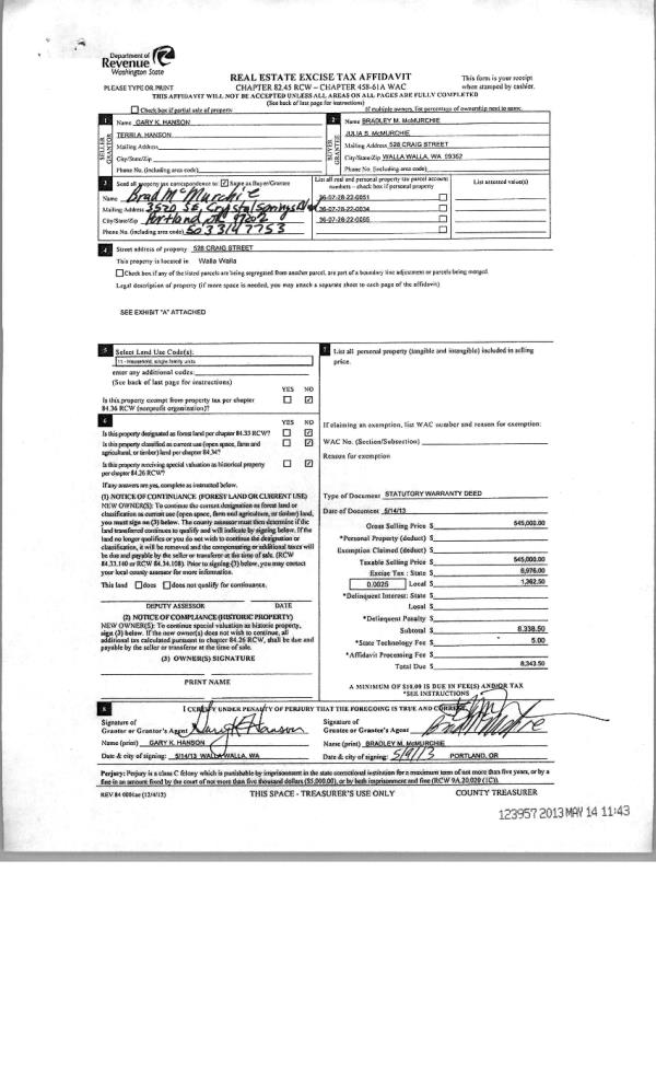 | 3 | 05/14/2013 | WARRANTY D | WARRANTY DEED | HANSON GARY K & TERRI A | MC MURCHIE BRADLEY M & JULIA S | 3-PARCELS | | $545,000.00 | 123957 | 2013-04809 |