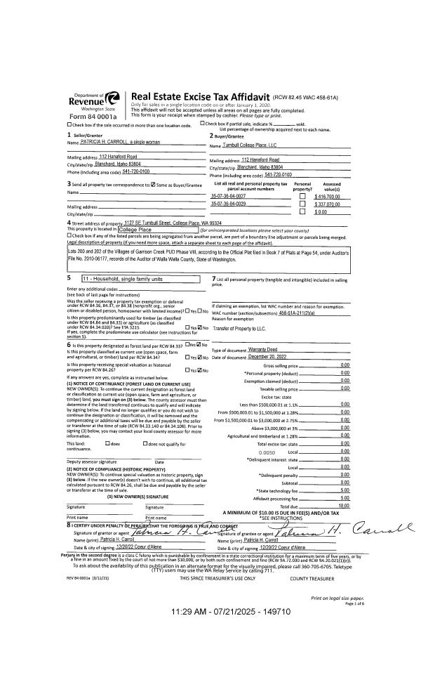| 1 | 07/21/2025 | WARRANTY D | WARRANTY DEED | TURNBULL COLLEGE PLACE LLC | TURNBULL COLLEGE PLACE LLC | | | | 0 | 2025-04178 |