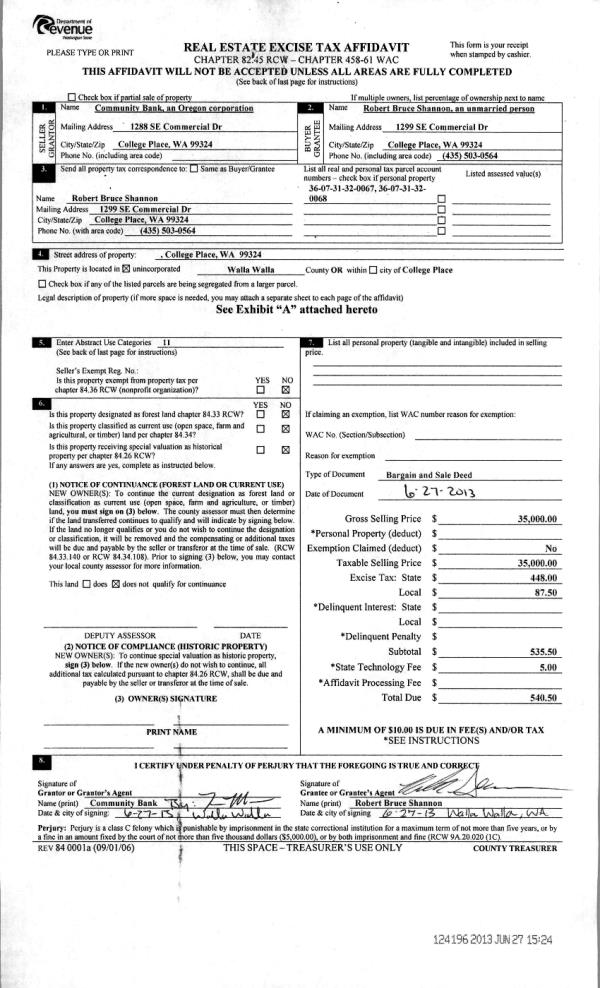 | 3 | 06/27/2013 | BARGAIN & | BARGAIN & SALE DEED | COMMUNITY BANK | SHANNON ROBERT BRUCE | 2-PARCELS | | $35,000.00 | 124196 | 2013-06472 |