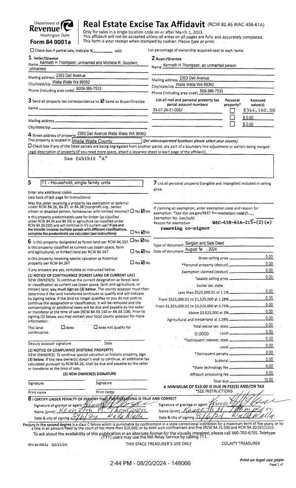 | 1 | 08/20/2024 | DEED | DEED | THOMPSON KENNETH H | THOMPSON KENNETH H | | | | 148066 | 2024-04664 |