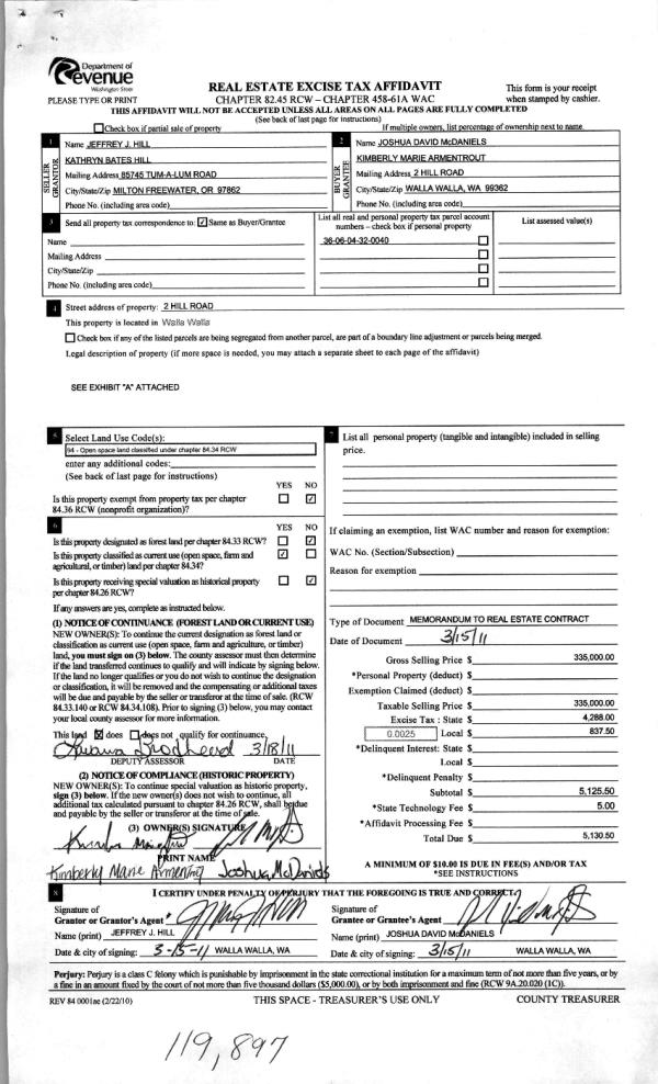 | 6 | 03/18/2011 | WARRANTY D | WARRANTY DEED | HILL, JEFFREY J & KATHRYN BATE | MC DANIELS, JOSHUA DAVID | | | $335,000.00 | 119897 | 2011-02373 |