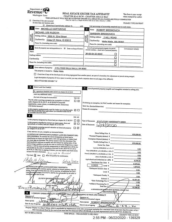| 2 | 06/22/2020 | SWD | STATUTORY WARRANTY DEED | HARTGROVE MICHELE | HHH LLC | | | $670,000.00 | 139329 | 2020-05755 |