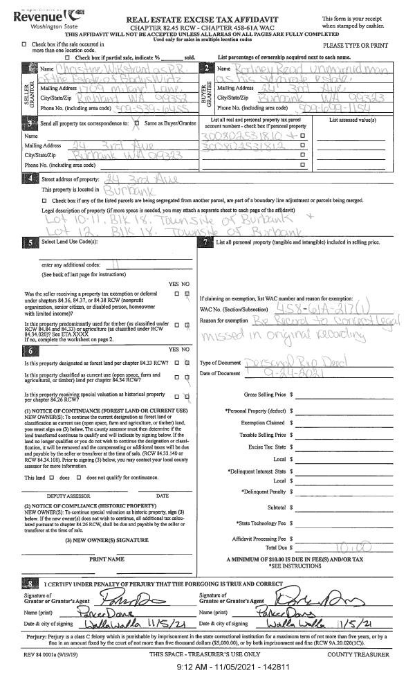 | Mailing Address: | PO BOX 94 BURBANK, WA 99323 | % Ownership: | 100.0000000000% |