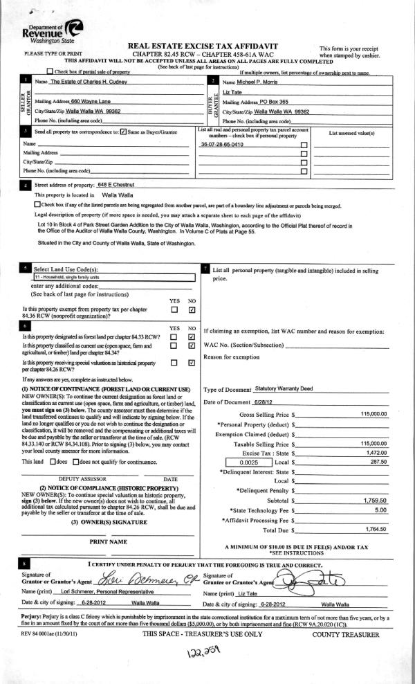 | 2 | 06/28/2012 | WARRANTY D | WARRANTY DEED | CUDNEY, CHARLES H ESTATE OF | MORRIS, MICHAEL P | | | $115,000.00 | 122259 | 2012-05421 |
