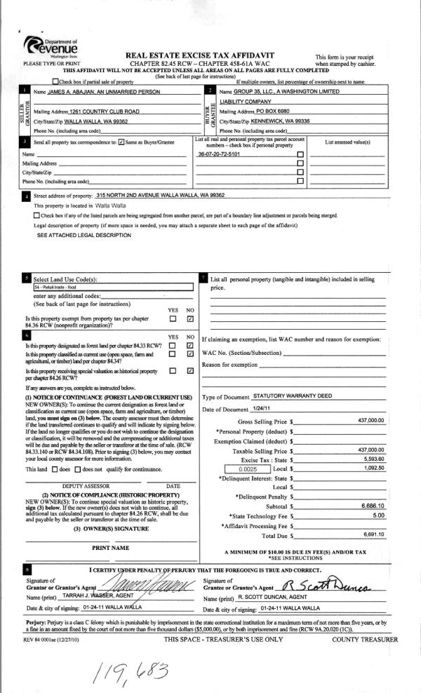 | 2 | 02/01/2011 | WARRANTY D | WARRANTY DEED | ABAJIAN, JAMES | GROUP 35 LLC | | | $437,000.00 | 119683 | 2011-01029 |