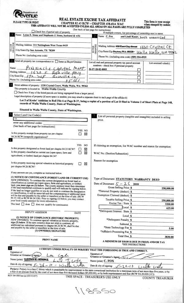 | 2 | 05/28/2010 | WARRANTY D | WARRANTY DEED | STONE, LEINO E & STEPHANIE J | FOX, CHRIS C | | | $250,000.00 | 118550 | 2010-04177 |