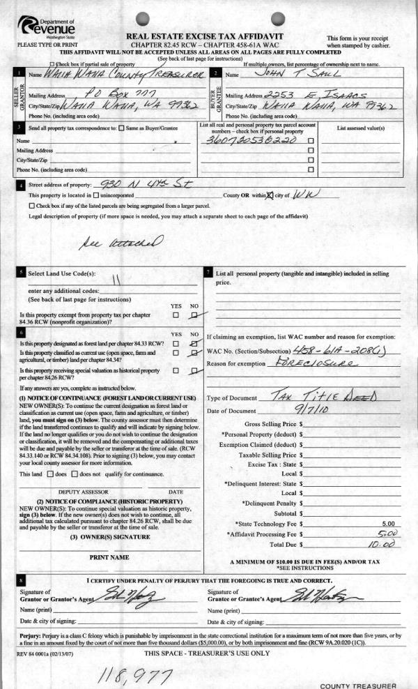 | 3 | 09/07/2010 | TAX AFF | TAX AFFIDAVIT | RAMOS, ROSA R | SAUL, JOHN T | | | $12,000.00 | 118977 | 2010-07040 |
