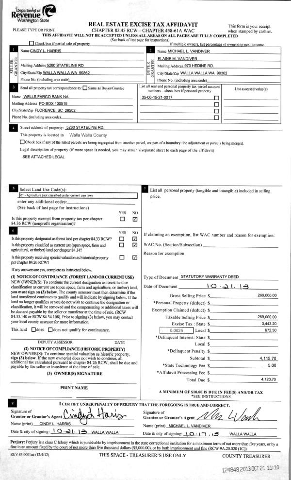 | 1 | 10/21/2013 | WARRANTY D | WARRANTY DEED | HARRIS, CINDY | VANDIVER, MICHAEL L & ELAINE M | | | $269,000.00 | 124848 | 2013-10512 |