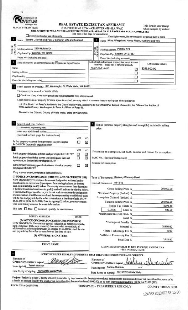 | Mailing Address: | 621 WASHINGTON WALLA WALLA, WA 99362 | % Ownership: | 100.0000000000% |