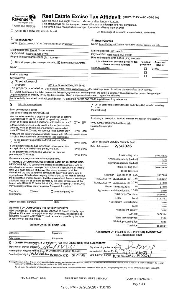 | Mailing Address: | 29 NE IVY LANE COLLEGE PLACE, WA 99324 | % Ownership: | 100.0000000000% |