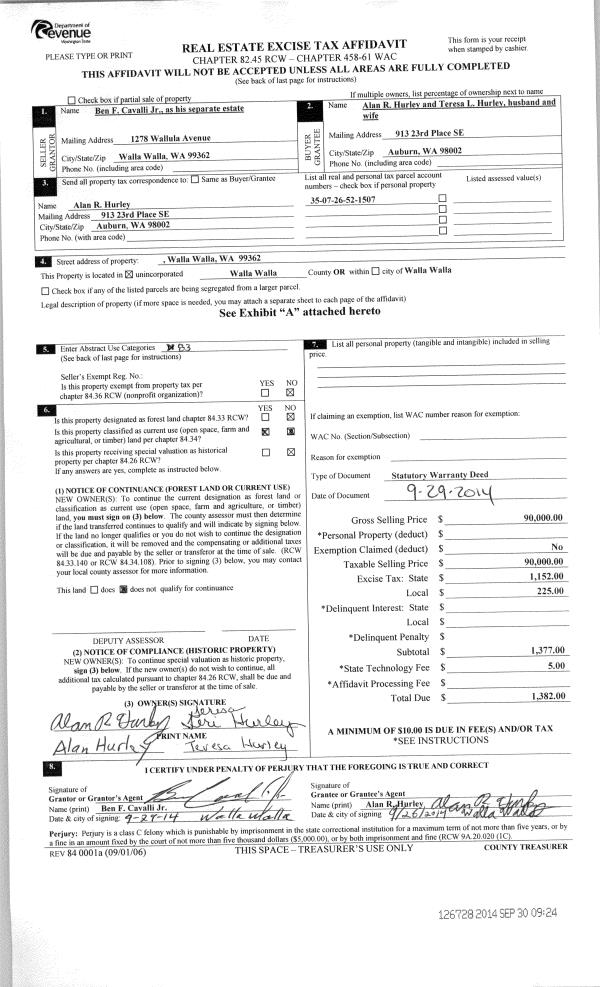 | 2 | 09/29/2014 | SWD | STATUTORY WARRANTY DEED | CAVALLI BEN F JR | HURLEY ALAN R & TERESA L | | | $90,000.00 | 126728 | 2014-07141 |