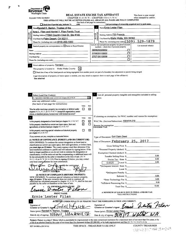 | 1 | 03/15/2017 | QCD | QUIT CLAIM DEED | | FILAN ERNIE LESTER | | | | 132042 | 2017-02008 |