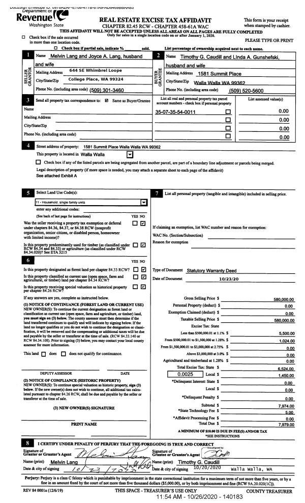 | 3 | 10/26/2020 | SWD | STATUTORY WARRANTY DEED | LANG MELVIN | CAUDILL TIMOTHY G | | | $580,000.00 | 140183 | 2020-11099 |
