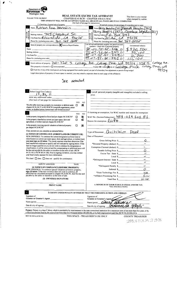 | 9 | 12/27/2013 | QCD | QUIT CLAIM DEED | HANAFIN FAMILY TRUST B | HANAFIN KENNETH CARL ET AL | | | | 126528 | 2014-06215 |