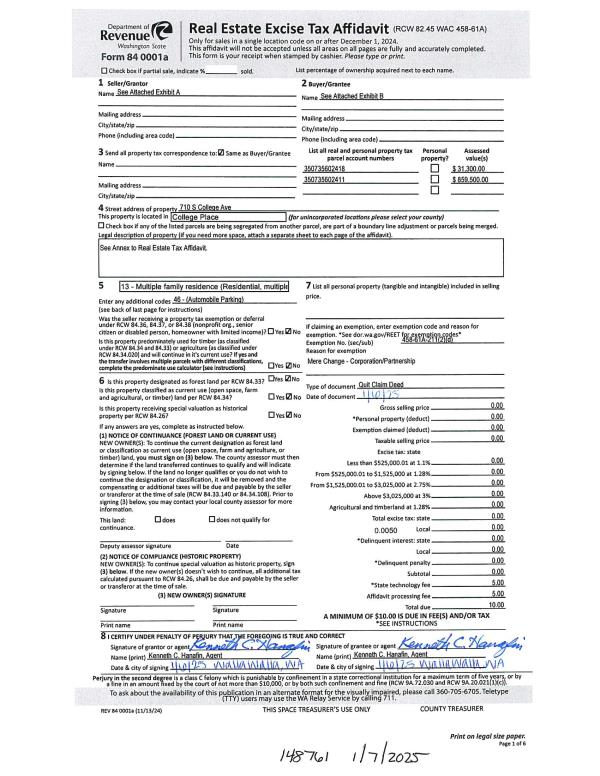 | 1 | 01/07/2025 | QCD | QUIT CLAIM DEED | HANAFIN FAMILY TRUST ET AL | HANAFIN HEGEDUS PARTNERSHIP | | | | 148761 | 2025-00089 |